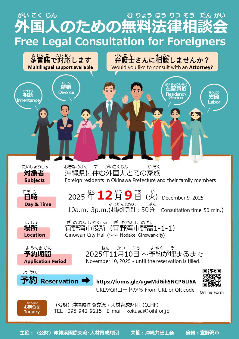 | 対象 | 原則、沖縄県内に在住する外国人とその家族 |