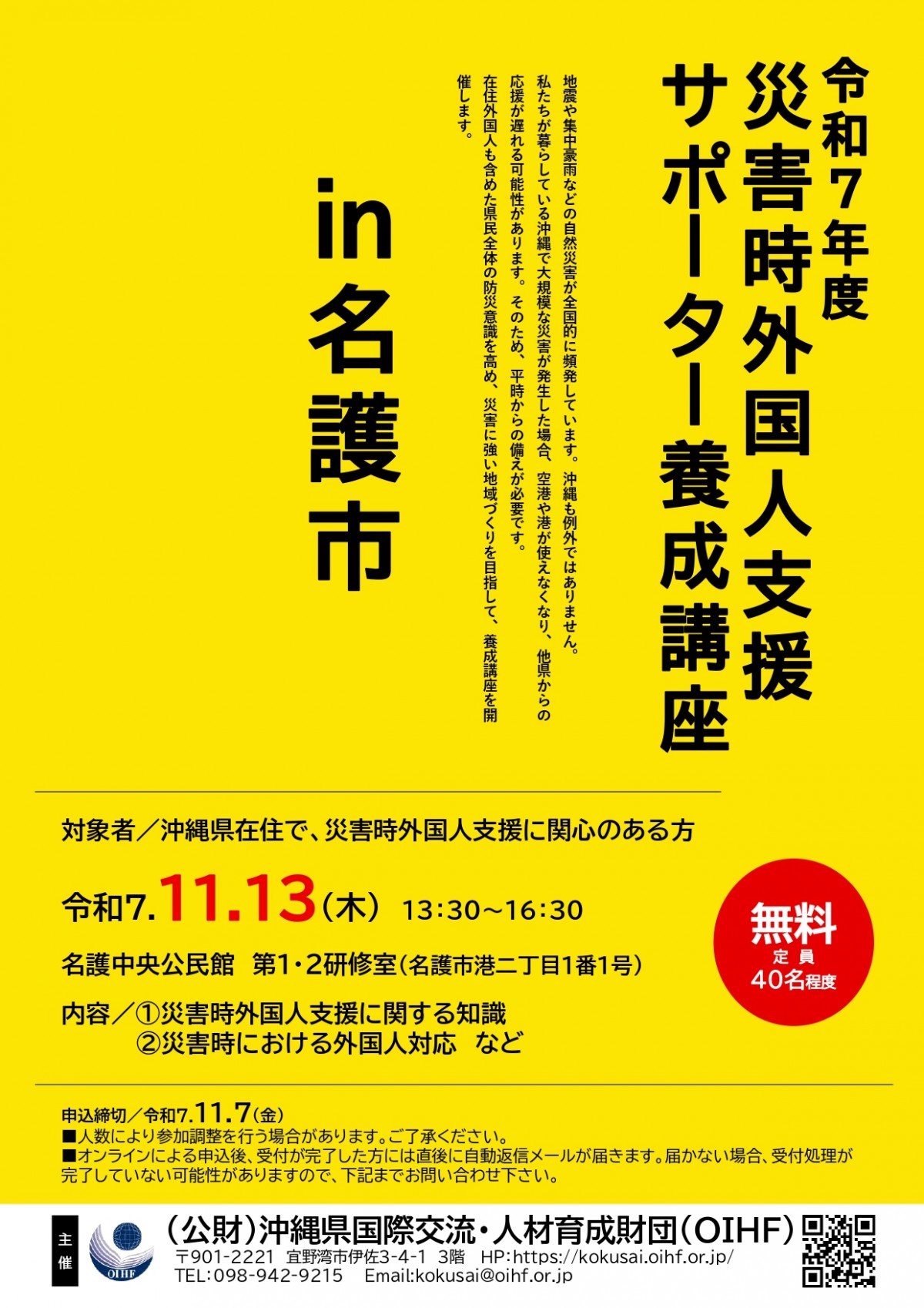 | 対象者 | 沖縄県内在住で、災害時外国人支援に関心のある方 |